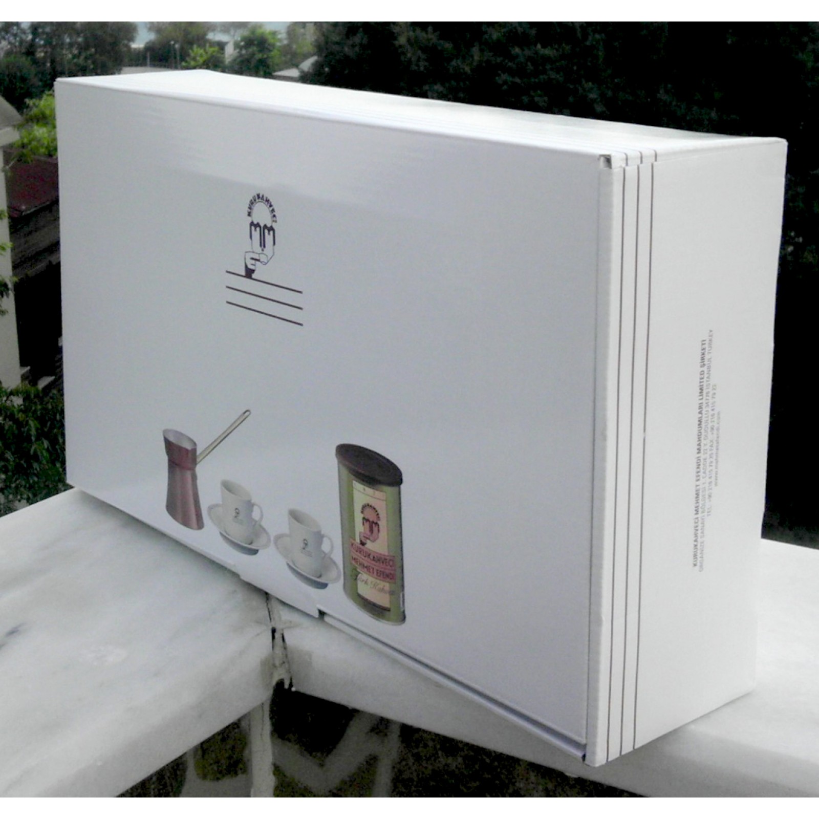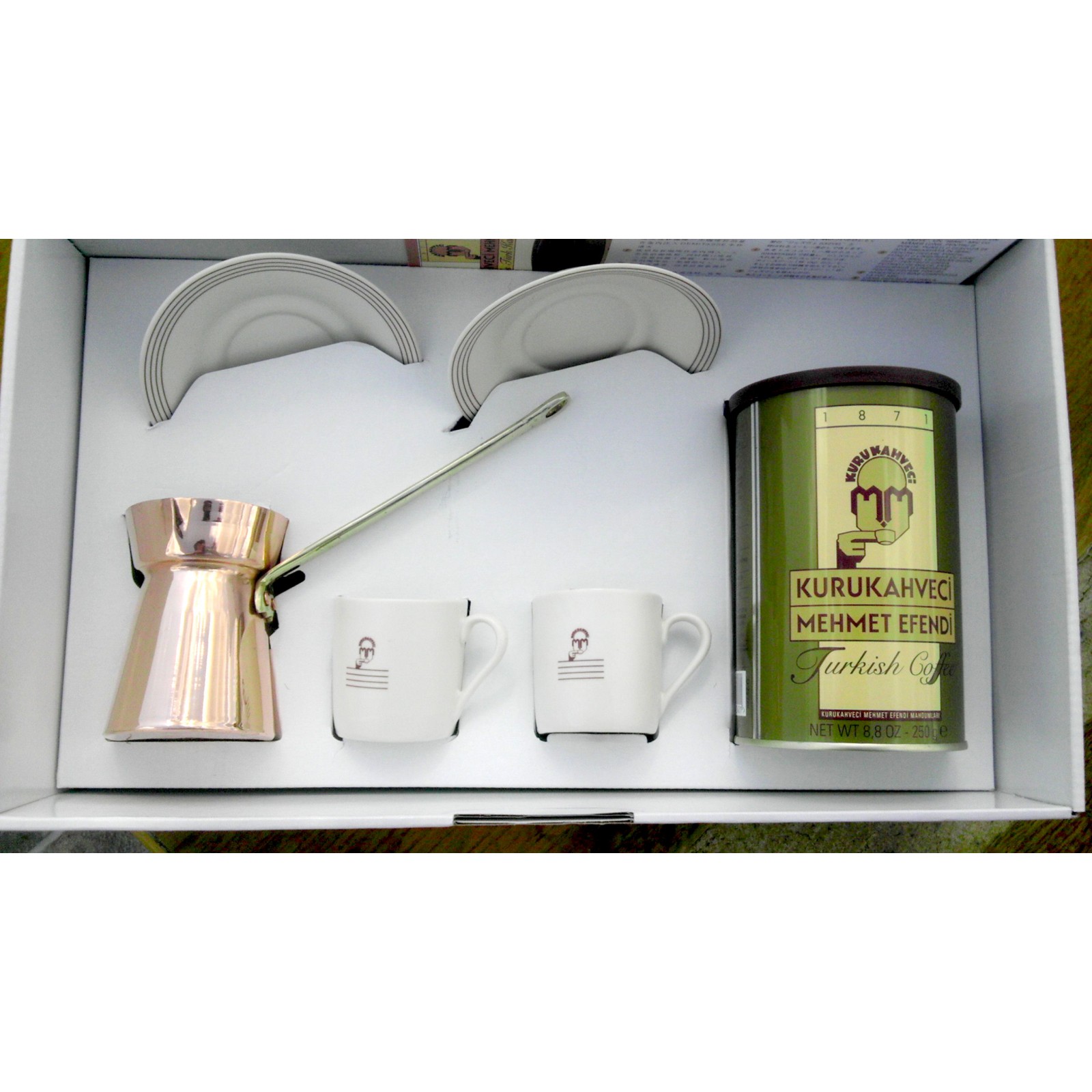Set includes: 1 Mehmet Efendi Coffee, 1 copper Jezve, 2 porcelane cups with saucers